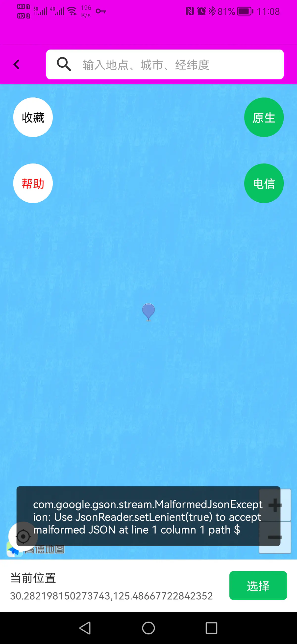 在`位置保护`里选点虚拟位置后点击右下角`选择`时报错