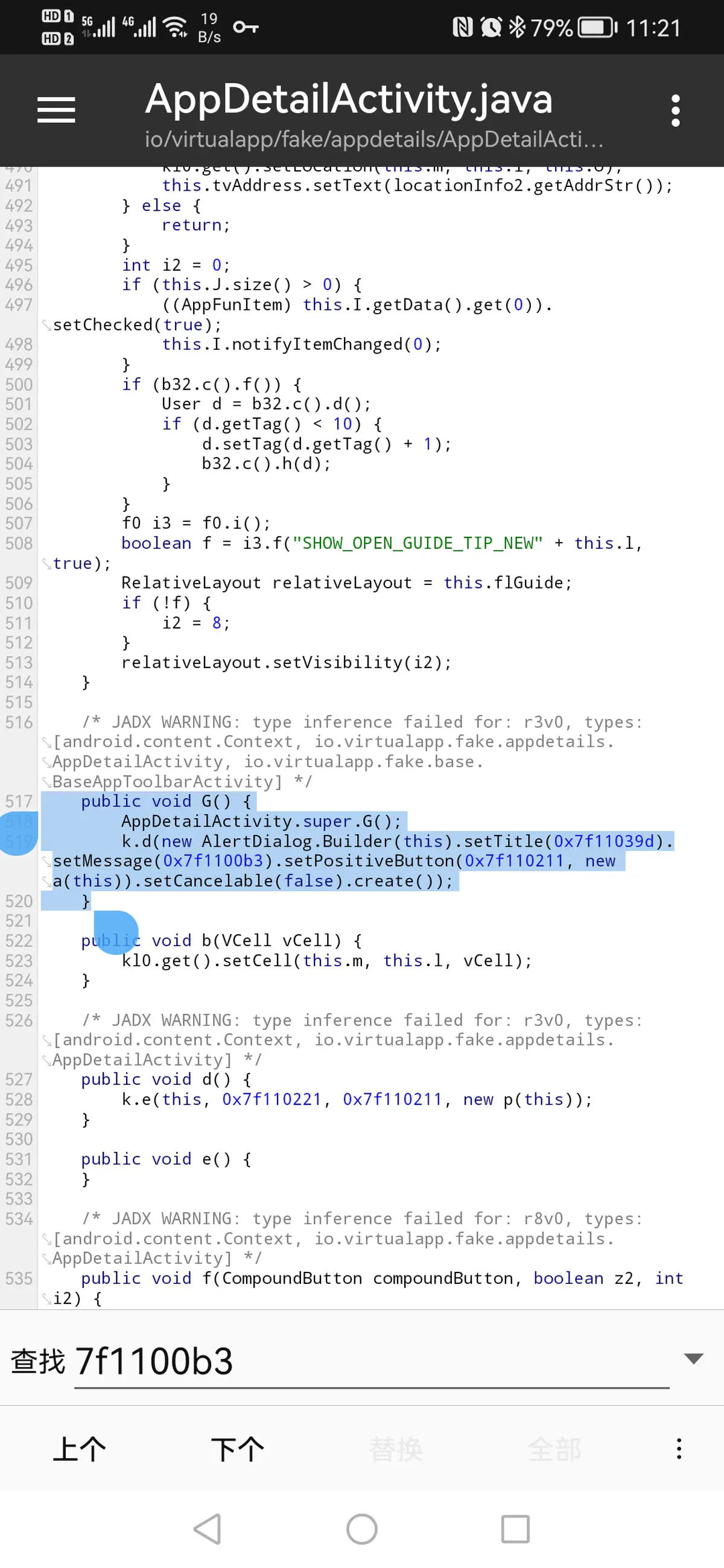 根据弹窗当前连接不到服务器,请稍后重试中的关键字,全局代码搜索无果,搜索Arsc资源得到ID7f1100b3,以该ID在全局代码中搜索发现弹窗的逻辑。