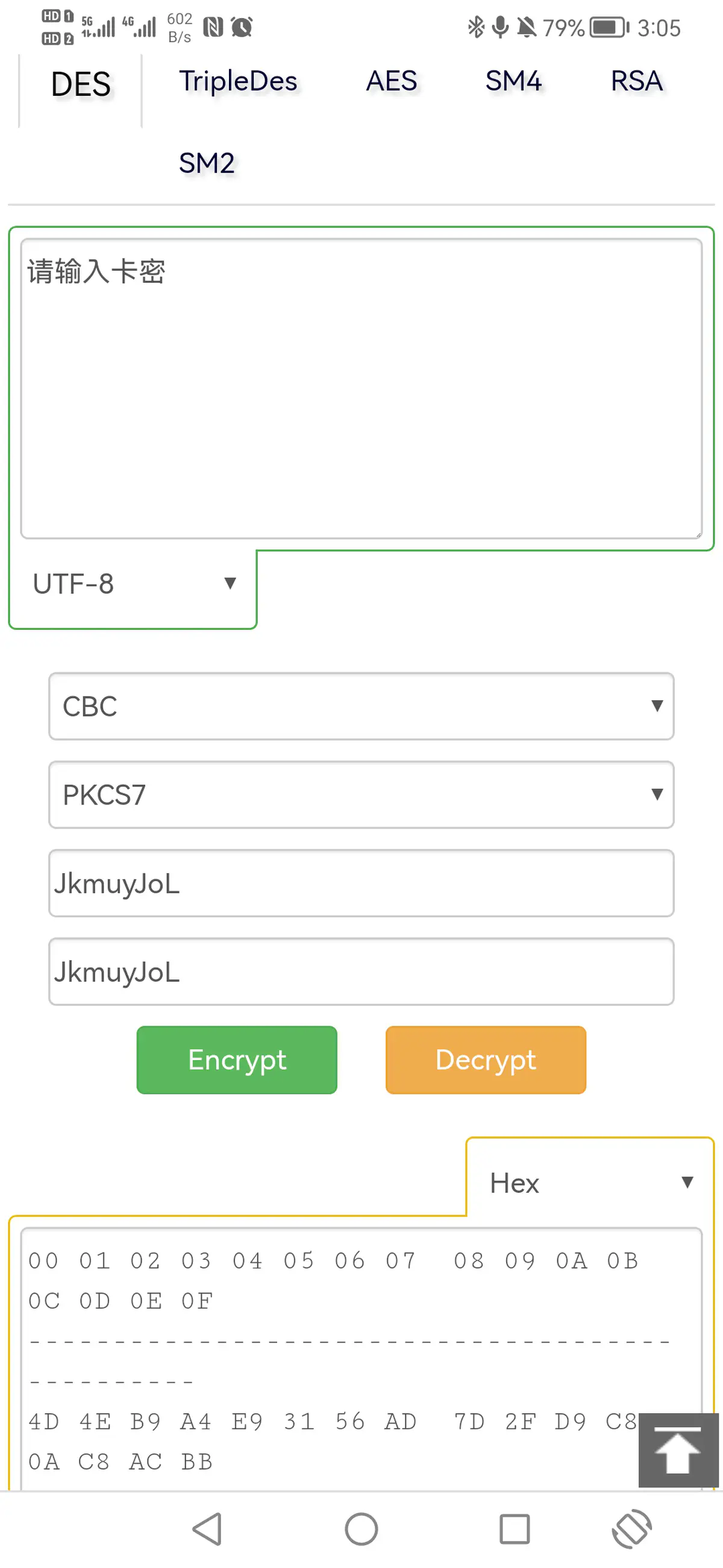 map . put ( CryptoBox . decrypt ( "F06BA0D8EBD24E7610D4F2CE7DB58654" ), App . f34452 ); //app_version