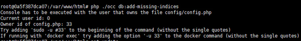 在Docker中运行的Nextcloud执行occ会出现权限问题: